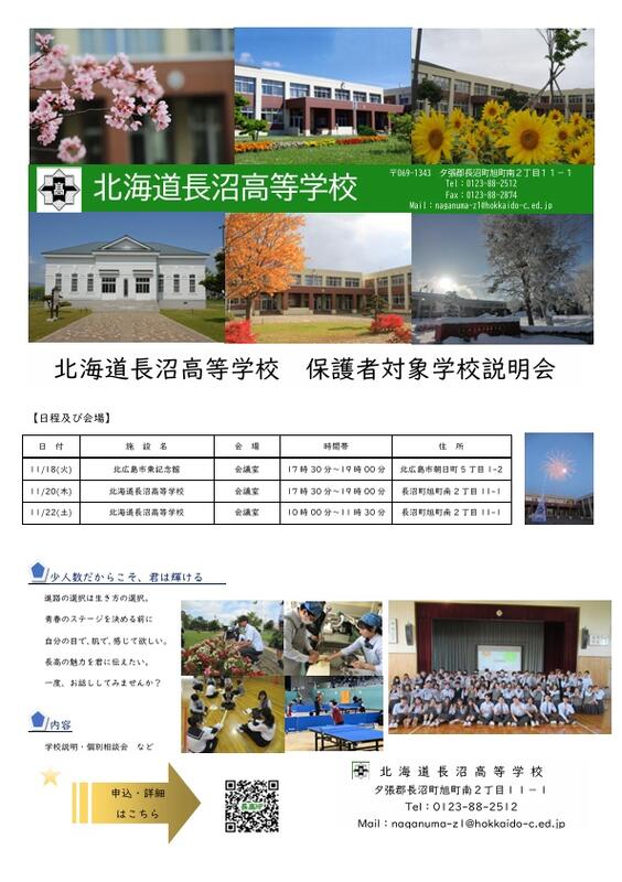 11/22(土) 10時00分~11時30分 北海道長沼高等学校